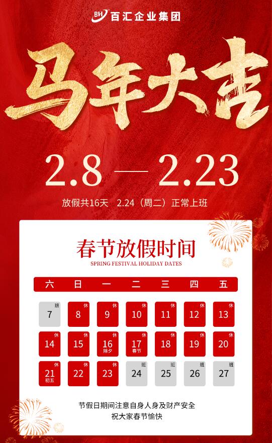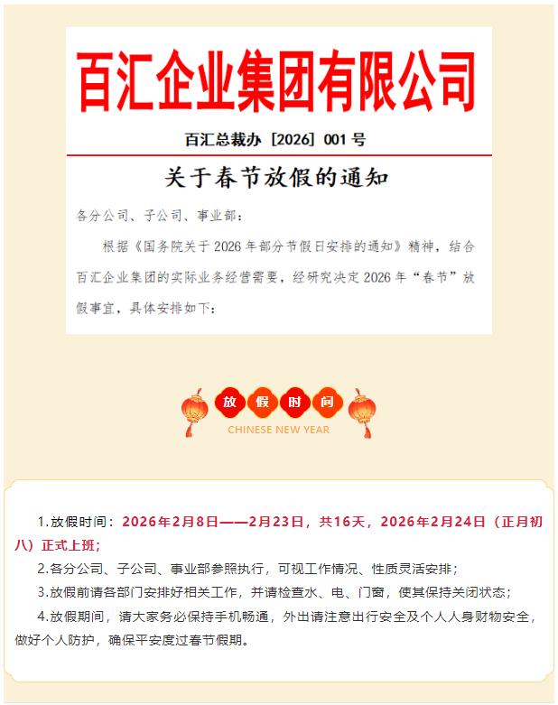 • 通知 | 百汇企业集团关于春节放假的通知